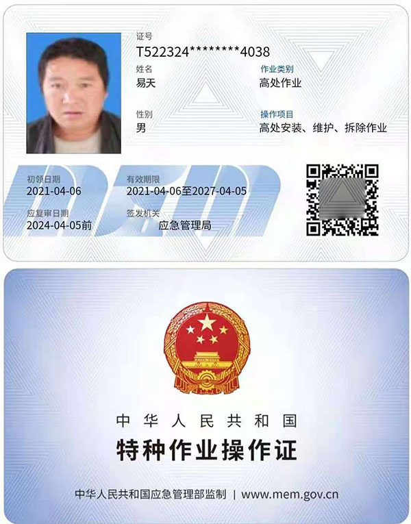 《特種作業(yè)證》特種上崗操作證由應(yīng)急管理部 頒發(fā),哪里發(fā)的都可以通用的,以前叫IC卡,現(xiàn)在叫感應(yīng)卡,3年年審一次,和身份證一樣的,只要你有專用的讀卡機,就能夠讀出卡里面的資料,但是這個讀卡機國家只給有資質(zhì)的單位,比如學(xué)校,應(yīng)急管理廳等才有,這證不管你拿去哪里,只要有讀卡機的地方都可以讀卡與年審,查詢方式也可以上發(fā)證部門應(yīng)急管理廳的網(wǎng)站,上輸入證號查詢的。