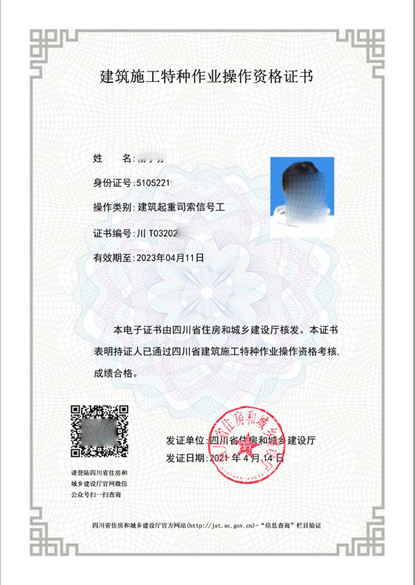 建筑起重司索信號工特種作業(yè)操作資格證書建設廳頒發(fā)的