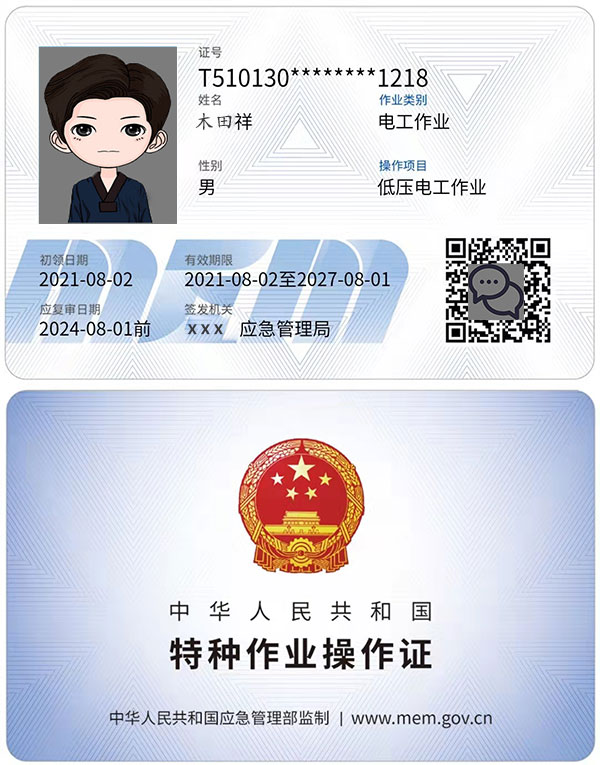 特種作業(yè)操作證。國(guó)家規(guī)定特種作業(yè)操作人員必須要做到持證上崗,電工特種作業(yè)操作證的作用相當(dāng)于上崗證,主要證明持證人具有電工安全操作的知識(shí)和能力。電工特種作業(yè)操作證是由國(guó)家安全生產(chǎn)監(jiān)督管理總局頒發(fā)的,有效期3年,到期后必須復(fù)審。