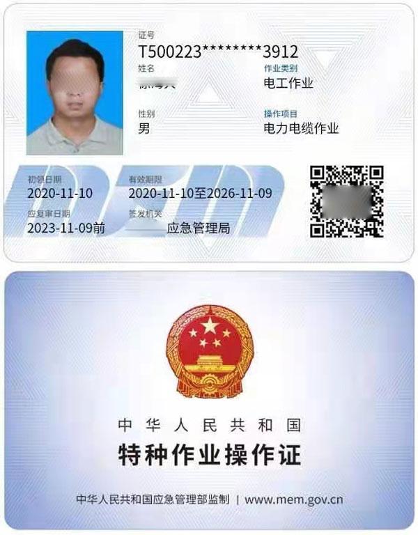 特種作業(yè)操作證。國(guó)家規(guī)定特種作業(yè)操作人員必須要做到持證上崗,電工特種作業(yè)操作證的作用相當(dāng)于上崗證,主要證明持證人具有電工安全操作的知識(shí)和能力。電工特種作業(yè)操作證是由國(guó)家安全生產(chǎn)監(jiān)督管理總局頒發(fā)的,有效期3年,到期后必須復(fù)審。