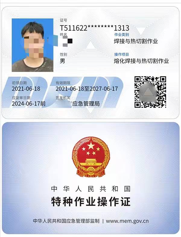 熔焊,又叫熔化焊,是一種最常見的焊接方法。所謂熔焊,是指焊接過程中,將聯(lián)接處的金屬在高溫等的作用下至熔化狀態(tài)而完成的焊接方法,可形成牢固的焊接接頭。由于被焊工件是緊密貼在一起的,在溫度場、重力等的作用下,不加壓力,兩個工件熔化的融液會發(fā)生混合現(xiàn)象。待溫度降低后,熔化部分凝結(jié),兩個工件就被牢固的焊在一起,完成焊接的方法。由于在焊接過程中固有的高溫相變過程,在焊接區(qū)域就產(chǎn)生了熱影響區(qū)。固態(tài)焊接和熔焊正相反,固態(tài)焊接沒有金屬的熔化。特種作業(yè)-熔化焊接與熱切割作業(yè)-焊工操作證,這個焊工證不分等級,由各省應(yīng)急廳頒發(fā),哪里發(fā)的都可以通用。3年年審一次,證件過期無效。
