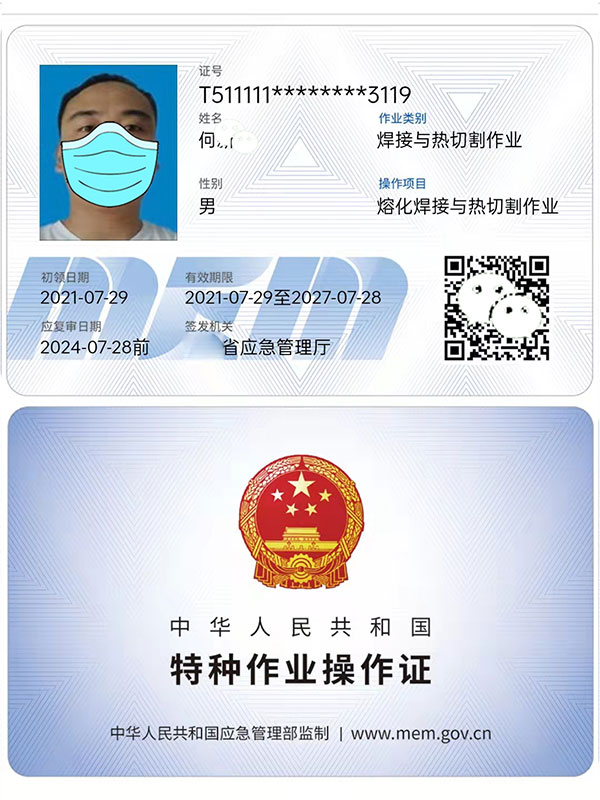 焊工操作證,則是國家要求的所有焊工必備的上崗證書。