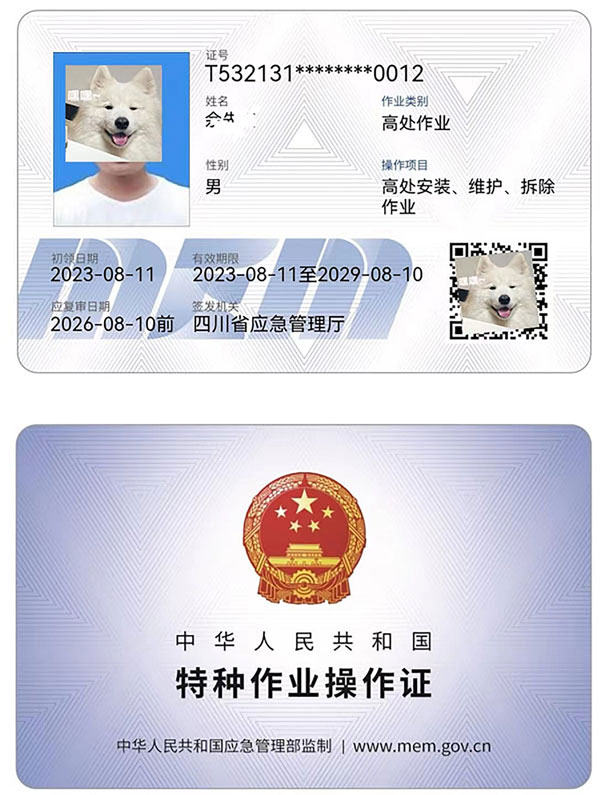 應急管理局《特種作業人員證書》低壓電工作業,高壓電工作業,熔化焊接與熱切割作業,高處安裝維護拆除作業 ,登高架設作業, 制冷與空凋設備運行操作作業, 制冷與空凋設備安裝修理作業,特種從業人員上崗證是每3年一審!