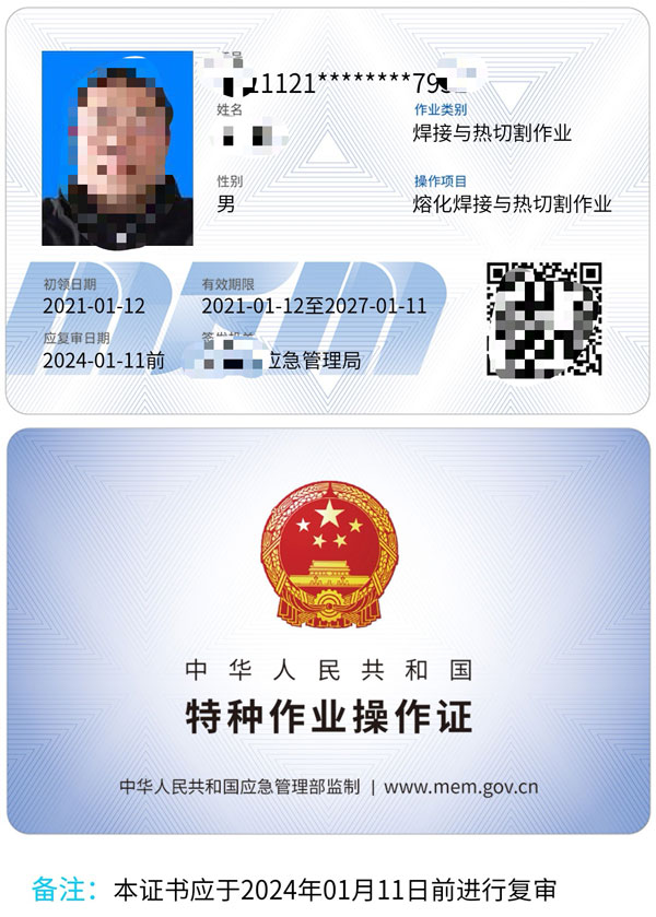 叉車司機-叉車證,電梯維修,特種安全設備管理,起重機指揮,起重司機(限門座式起重機),起重司機(限橋式起重機),起重司機(限門式起重機),起重司機(限纜索式起重機),起重司機(限塔式起重機)起重司機(限流動式起重機)起重司機(限升降機),觀光和觀光列出司機,鍋爐壓力容器壓力管道管理,電梯管理,起重機械管理,場(廠)內專用機動車輛管理,工業鍋爐司爐,電站鍋爐司爐,鍋爐水處理,快開門式壓力容器操作,移動式壓力容器充裝,氣瓶充裝,金屬焊接操作-壓力焊PE焊,非金屬焊接操作-壓力容器焊,食品檢驗員,化學檢驗員,農產品檢驗員(4年一審,需要到期前3個月進行)從事特殊工種作業人員必須熟悉相應特殊工種作業的安全知識及防范各種意外事故的技能。要求從業人員持卡上崗,即由國家安全生產監督管理局頒發《中華人民共和國特種作業操作證》方可上崗。